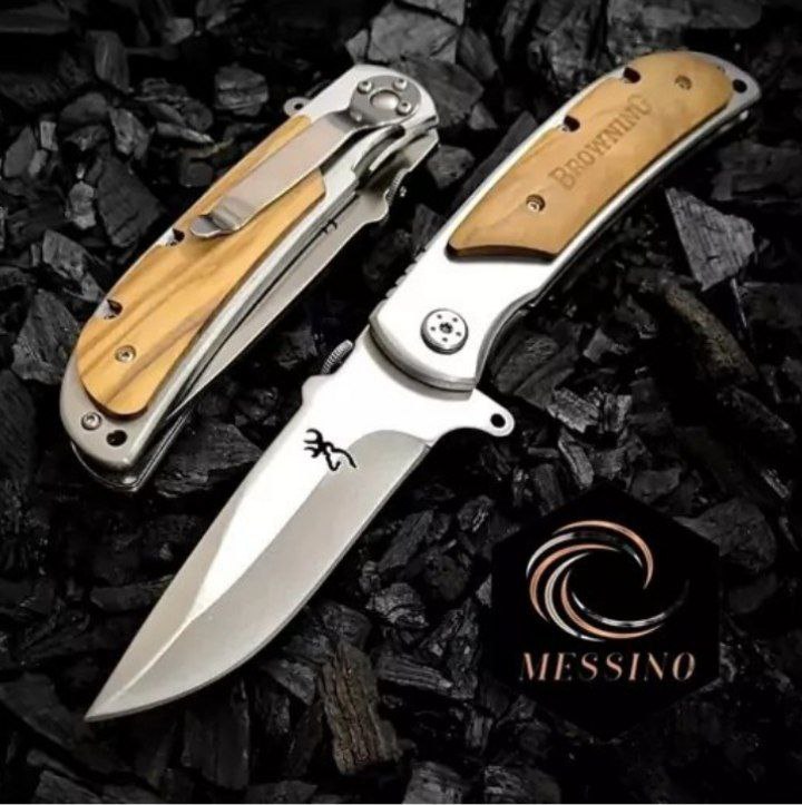 چاقوی برونینگ استیل _طرح مشهور و قدیمی_ با تیغهی بشدت تیز و گیره اتصال به کمر