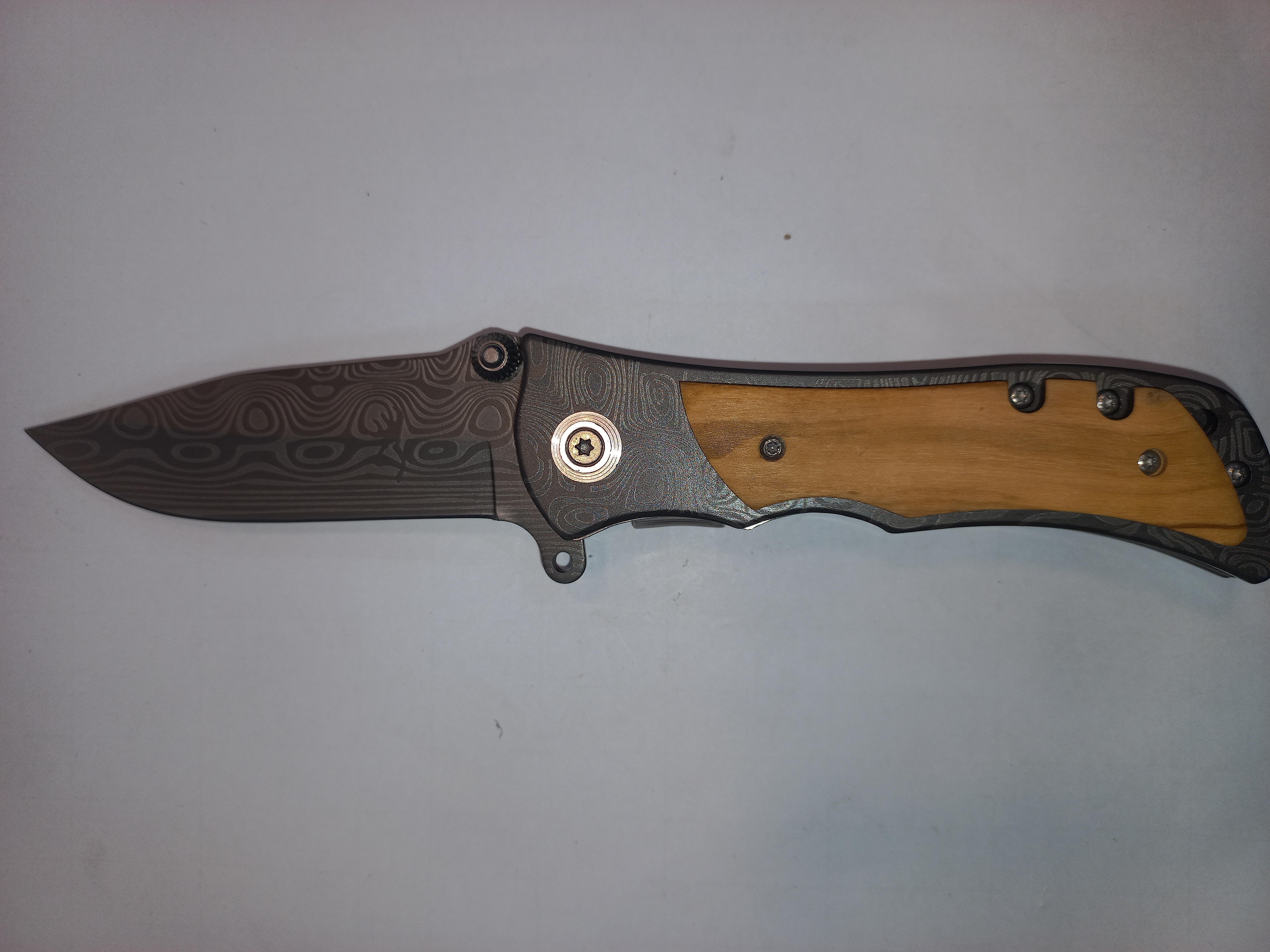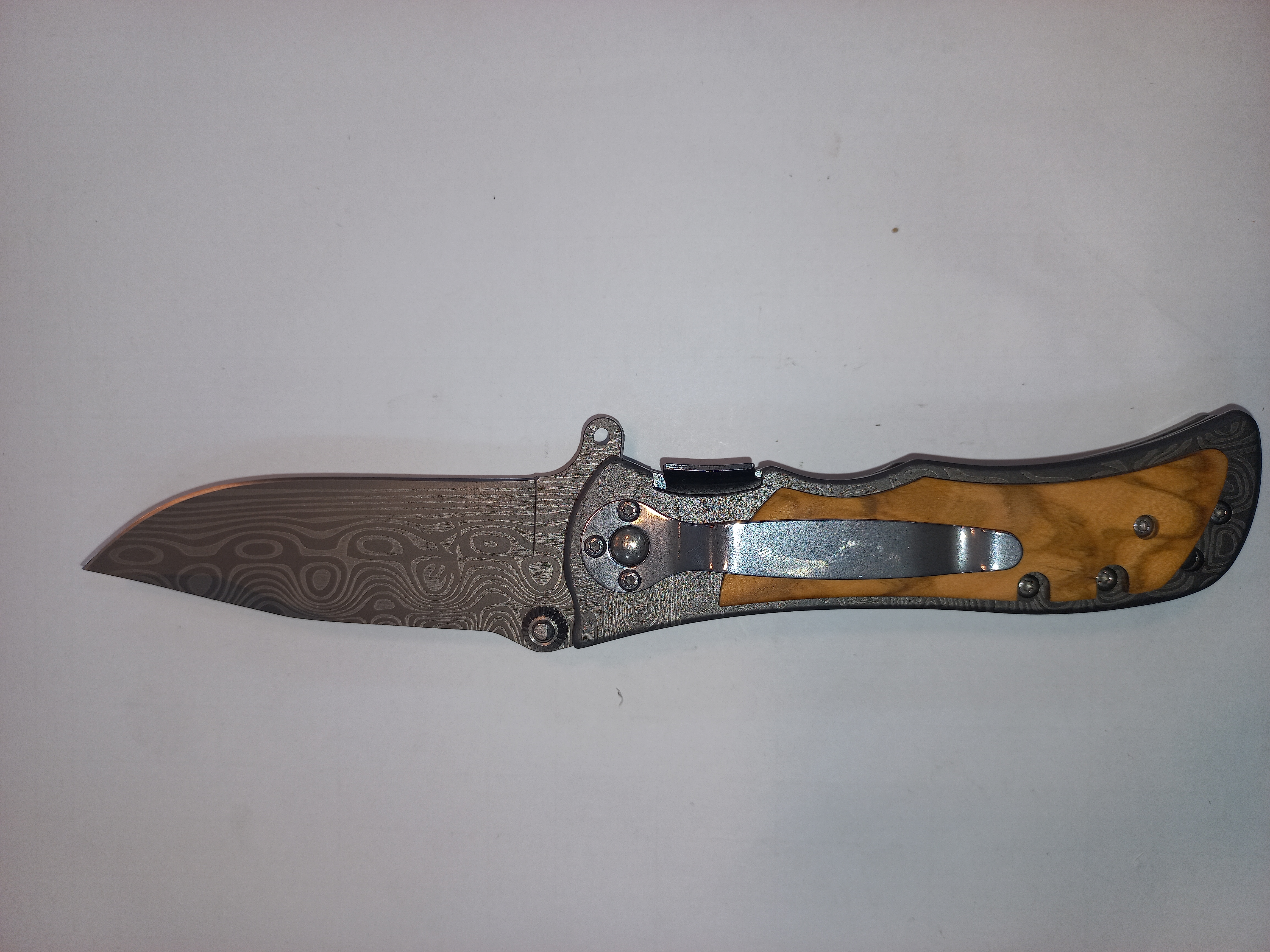 چاقوی برونینگ بسیار زیبا و خوش خط و نگار با تیغه طرح دار و دارای گیره اتصال به کمر