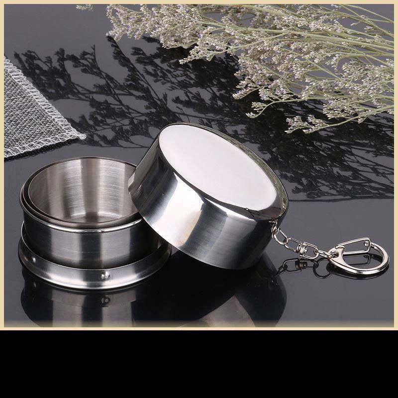 لیوان تاشو استیل با گیره اتصال به کیف و ... با کیفیت