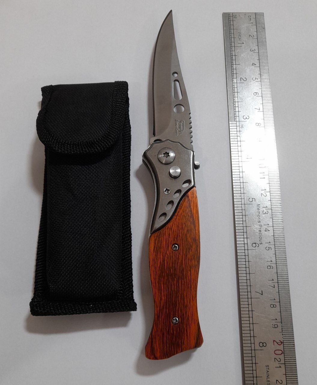 چاقوی دسته چوبی پرشی مدل سه سوراخ ۲۰ سانتی همرا با کیف مخصوص برزنتی